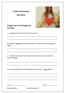 Taħriġ fuq il-poeżija Ħitan tas-Sejjieħ (PDF / DOC)